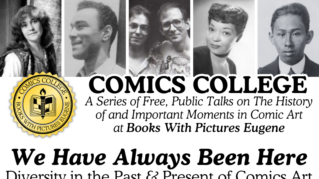 Before opening Books With Pictures Eugene, owner Andrea Gilroy was an educator in both classroom and public settings. Education is really important to the Books With Pictures team, so we love getting to dig in deep stuff: the history of comics, how comics work, and what makes comics great. Every month, on the first Wednesday evening, we host "Comics College," a free talk about the history and appreciation of comics art!