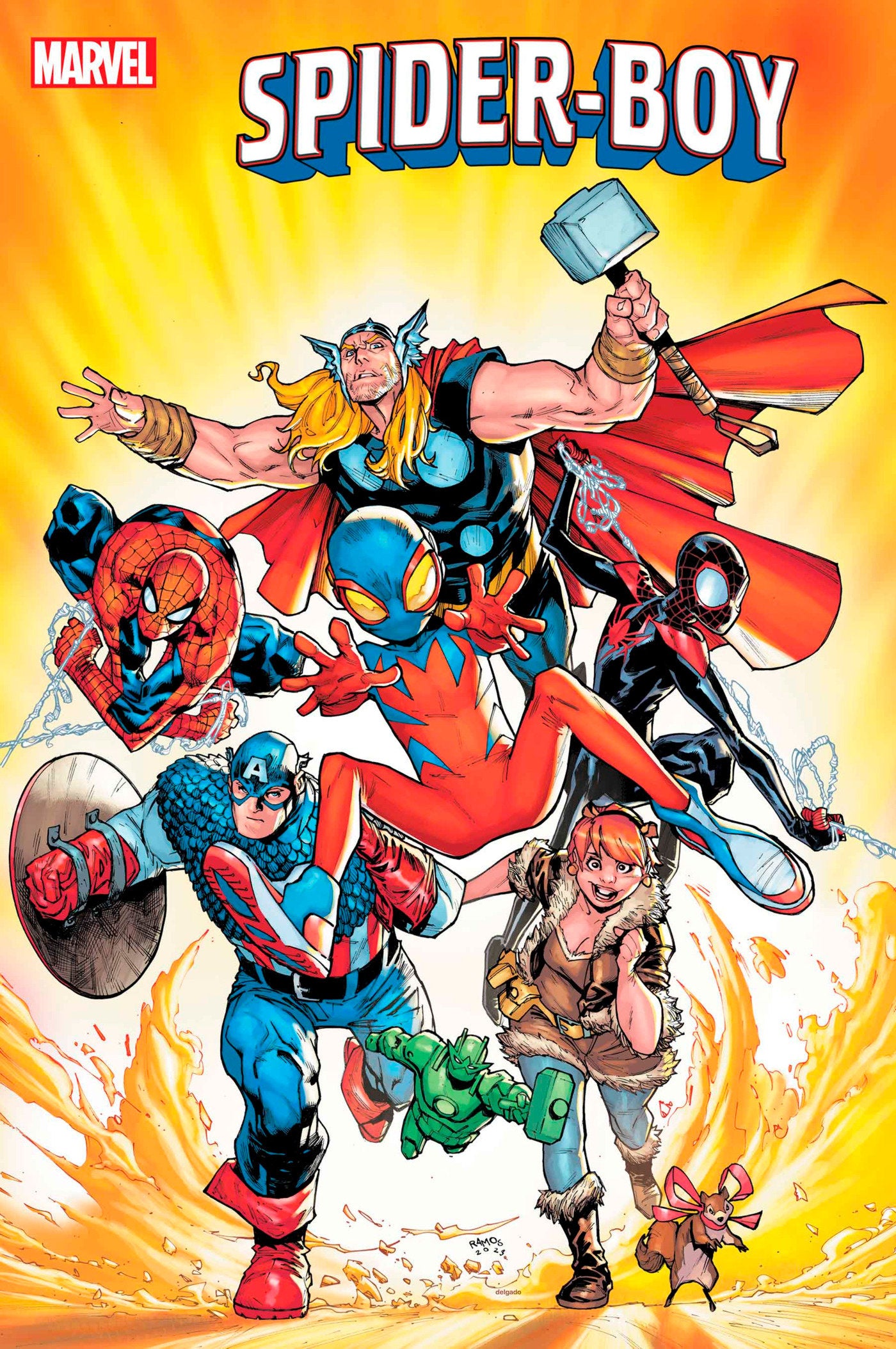 It's the slam-bam conclusion to Spider-Boy's first big multi-part adventure! And all of his amazing friends are showing up to help! Guest-starring: CAPTAIN AMERICA, THOR, SQUIRREL GIRL, THE TOY SOLDIER, MILES MORALES: SPIDER-MAN, and PETER PARKER: SPIDER-MAN! And featuring a major turning point in the life of Bailey Briggs! His life (and this comic) will never be the same again! You do NOT want to miss this one, Spidey-B fans!