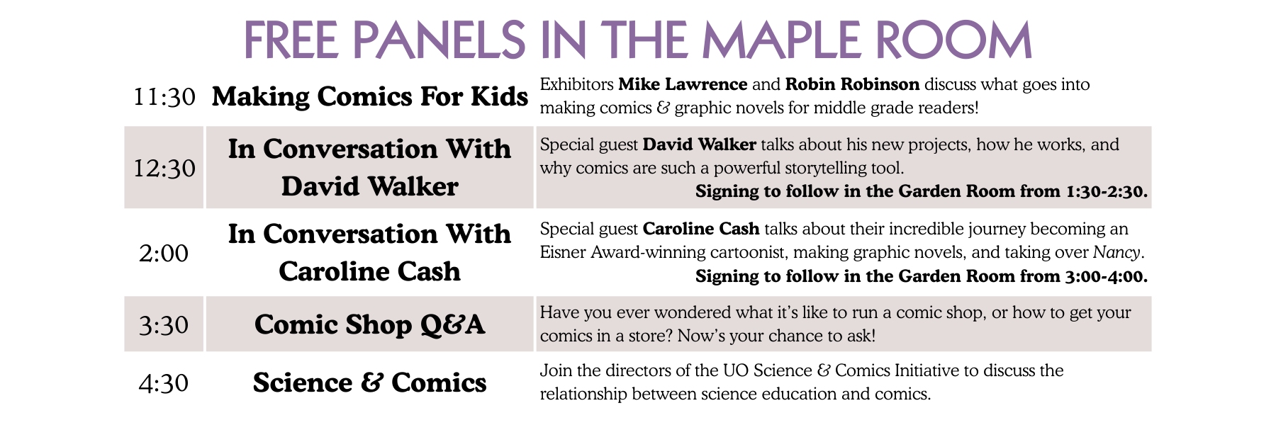 With guest artists, panels, workshops, and a whole alley full of amazing comics artists, CAFE is Eugene’s homegrown comics festival—welcoming to longtime fans and curious newcomers alike!