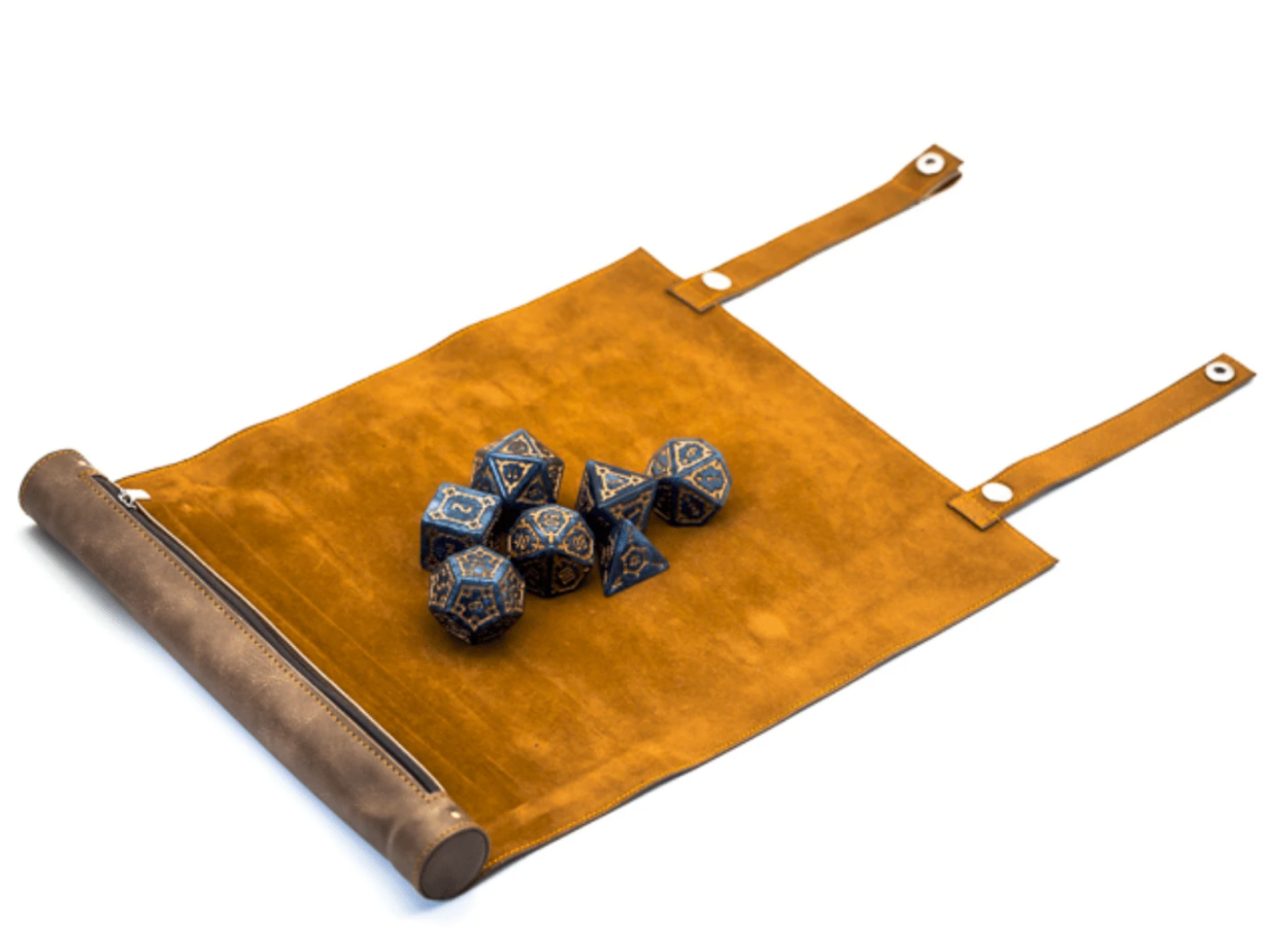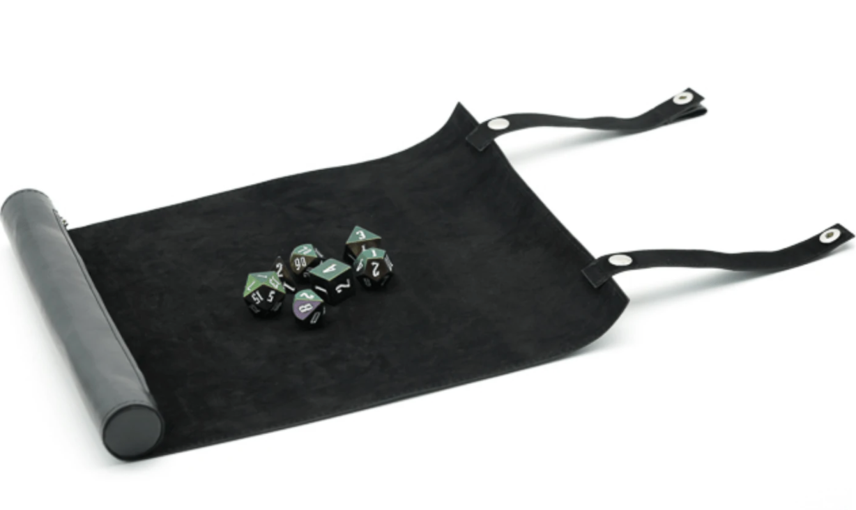 This Dice Mat has it all - It rolls up for easy storage when not in use, has sturdy snaps, a zipper pouch to hold your dice and is the perfect rolling mat to protect your table and your dice.
