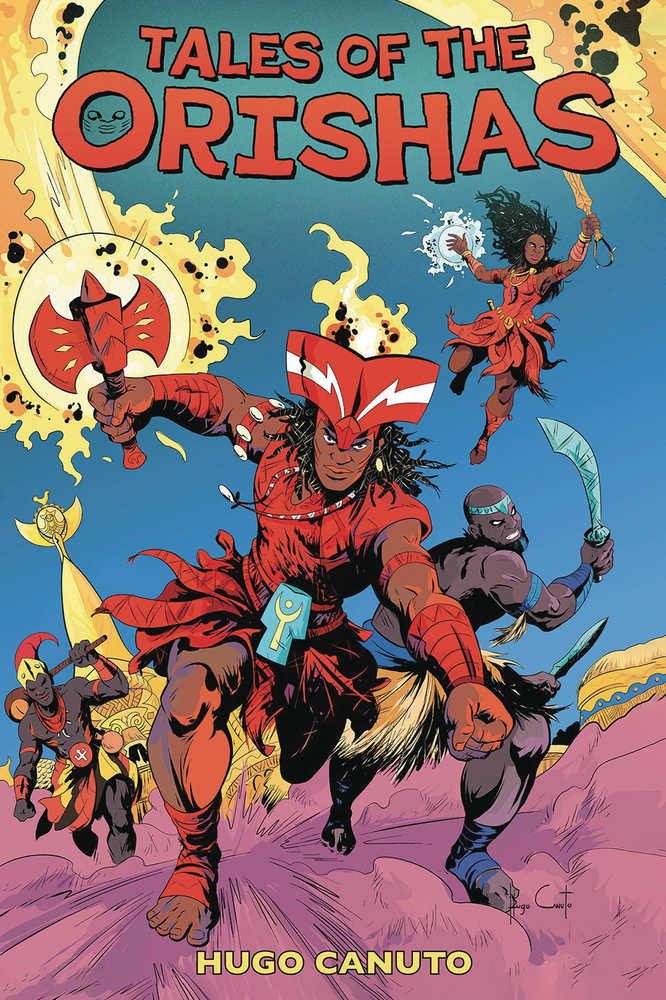 In ancient times, when heaven and Earth were united as two halves of a gourd, deities and heroes walked among men. They fought battles with fury and taught the ways of the ashe (the energy of creation), land, iron, and fire. They reigned and loved with great intensity. Some descended from the luminous Orun, to live their lives and fulfill their destinies, while others were born in the aiye, and through their great deeds became Orishas, changing forever the history of two continents. Tales of the Orishas fuses the pantheon of the African Diasporic religion of Candomble with the Silver Age comic aesthetics of Jack Kirby into a riveting tale of high adventure. The story centers around a celestial battle between the gods of Brazil, who are worshipped by the Bahia people, and a fearsome conquering force led by a dark and malevolent overlord. Only Shango, the god of fire and thunder, can lead his people into victory while the fate of creation hangs in the balance.