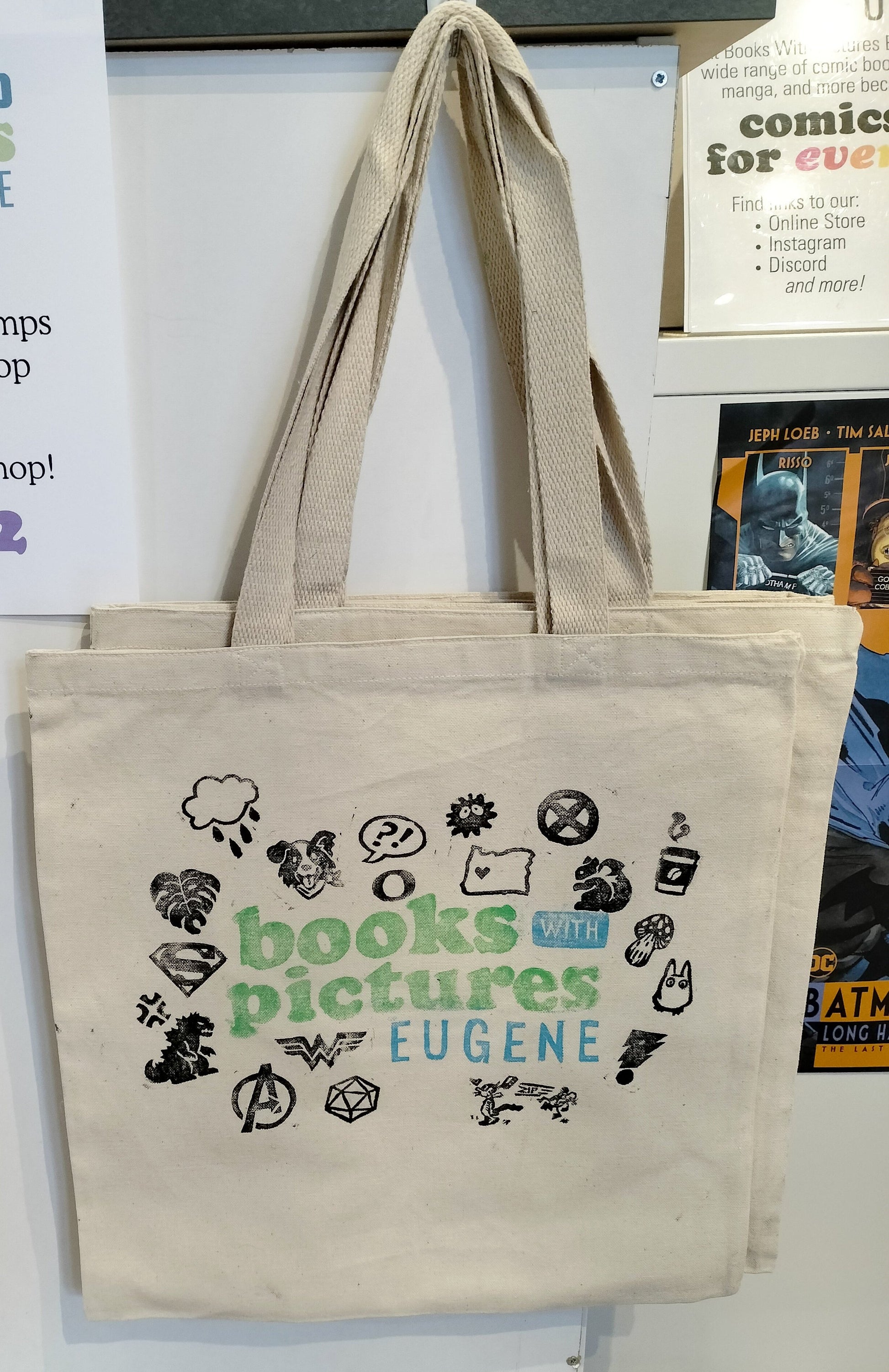 100% Cotton Canvas Tote Bags printed in-house by BWP staff! Perfectly sized for carrying your favorite comics.
