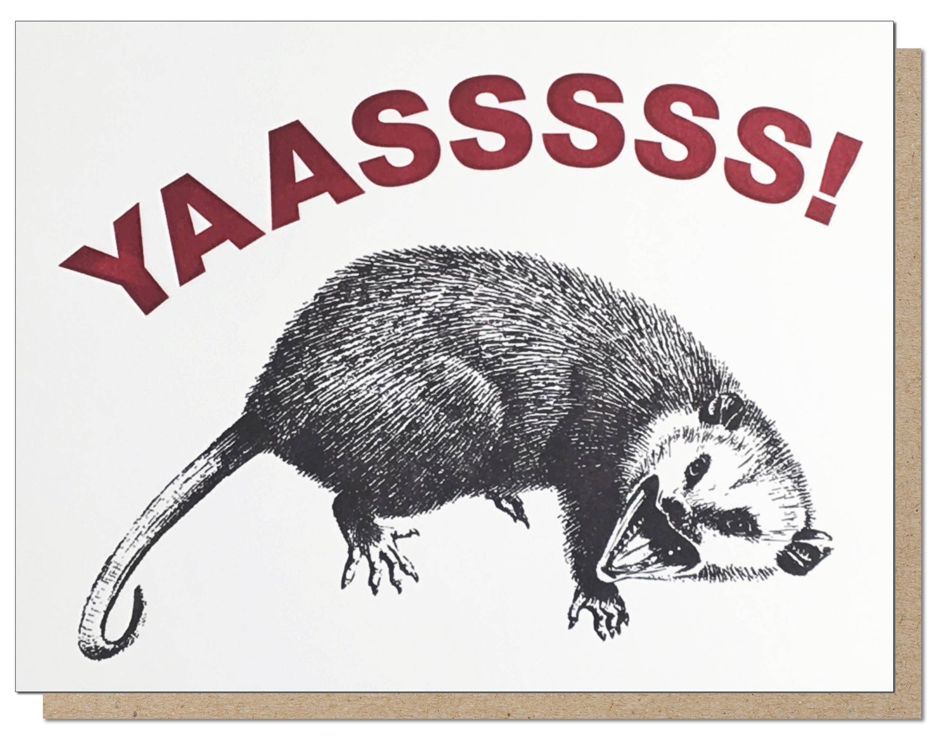 A2 (5.5x4.25") greeting card, letterpress printed on french paper co. Card stock. Packaged with recycled kraft paper envelope.